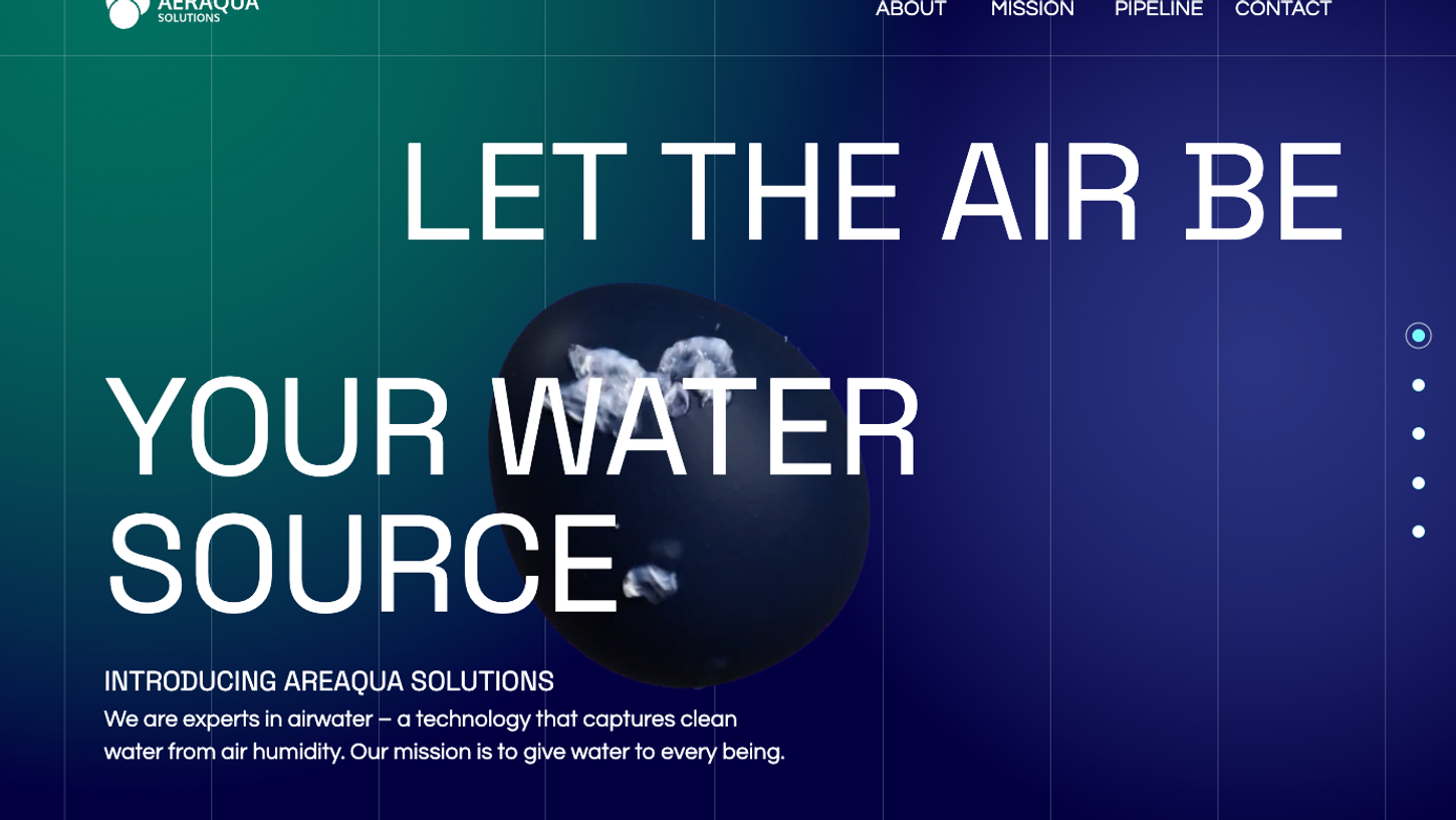 Aeraqua Solutions on kotimainen teknologia-alan start-up, joka kehittää ilmankosteudesta vettä. He tarvitsivat nopealla aikataululla yritykselleen uuden brändi-ilmeen ja verkkosivuston. Projektin kesto, suunnittelusta intensiiviseen toteutukseen, oli noin kaksi viikkoa.
